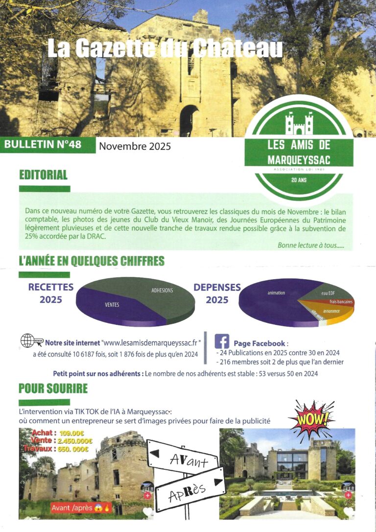 Le nouveau numéro de la Gazette du château est chez nos adhérents